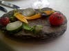 - Veal sirloin and roasted tomato, burrata, white anchovy and roasted garlic puree