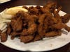I decided on a Number 11 – Chicken Pakora. Think lentil battered fried chicken strips. The waiter forgot to bring chutney, an error the floor supervisor offered to correct.