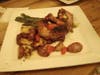 My chicken under a brick was good, and not great. Sporting marinated chicken roasted potatoes and asparagus topped with a cherry tomato vinaigrette, I found the chicken a bit dry….and in need of some more marinade for moisture and flavor.