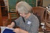 Hancock, New Hampshire resident Connie Gray gave tips to nearly a dozen local amateur weavers as part of this weekend's event on Latvian weaving at the .