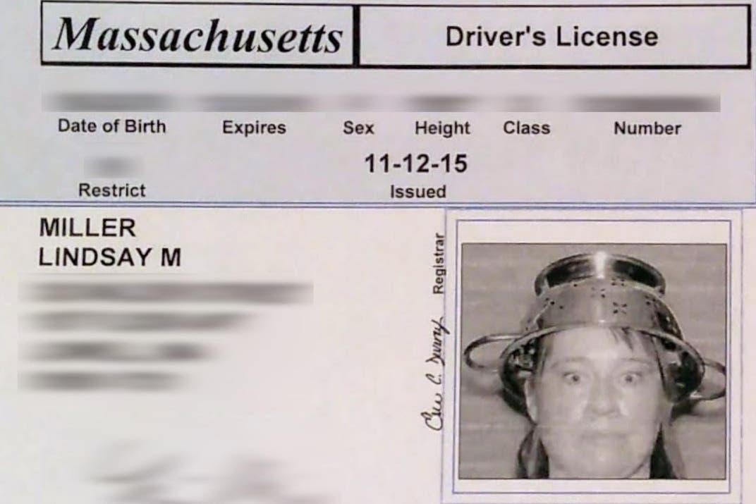 Lindsay Miler, who claims to be a “Pastafarian,” was initially denied the request but recently won an appeal—as the RMV allows headgear in license photos for religious or medical reasons.