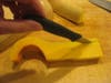 - Peel, seed, and dice the butternut squash. Wait, don’t leave! I know whenever I see a recipe that calls for peeled, diced winter squash, I sigh and move along. There’s no two ways about it: it’s a drag to peel winter squash. However, I have a few tips to make the job more manageable. First, use a large knife to cut your butternut squash in half. Remove the seeds, and place your squash cut side down on a cutting board. Use your large knife to cut each half of the squash into thirds or quarters (the long way). Now, use a smaller knife to cut the peel off the smaller pieces of squash. I’ve included a picture. This is the easiest way I’ve found to peel winter squash.
