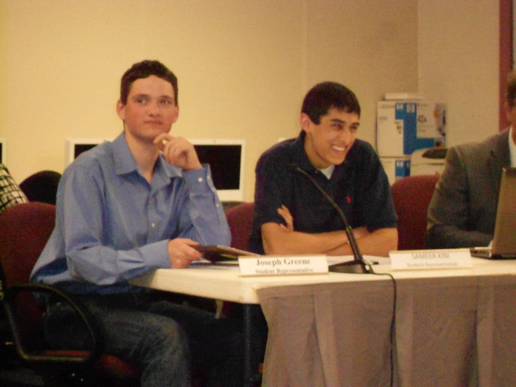 During Monday night's School Committee meeting student representatives Joseph Greene and Sameer Kini were recognized by Superintendent Bill Olsen and the School Committee for their service.