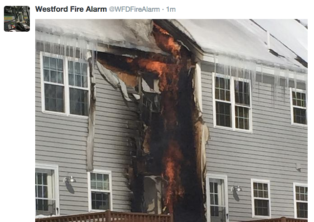 The Lowell Sun reported the fire burned the exterior of two of the condo units. Westford firefighters were investigating the cause of the blaze.