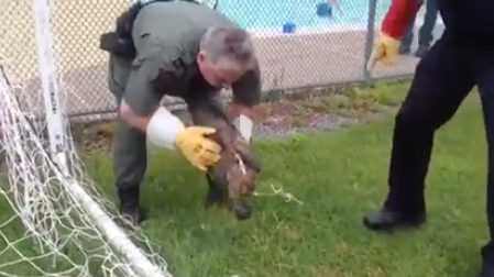 Watch the dramatic rescue of an owl that was stuck in a soccer net.