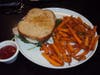 Entrées: Small and large salads include Greek ($4.25/$6.25), black bean ($5.75/$8.75) and tomato & cucumber ($3.75/$5.75) with several dressing options and added chicken ($1.50/$3) or shrimp ($3). Sandwiches are served cold or grilled with fries (with generous substitution options). They include turkey and goat cheese (with avocado and spinach, $7.50) and chicken parmesan (served on garlic bread, $9.50). Small and large pasta dishes offer ziti, linguini or gluten free (for an additional $1.25/$2.50) options. They include unblended pesto (with the ingredients used in pesto, $7.75/$11.50), chicken and broccoli alfredo ($6.75/$10.50) and shrimp in a white wine sauce ($8.75/$12.50). Calzones include eggplant ($9) and steak and cheese ($11.50); or create your own ($8.25 + $1 per topping).