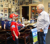 The two shared stories and laughs as Sam toured the facility, beginning with a stop at Kraft’s trophy room, which prominently displays the Patriots’ three Super Bowl trophies and houses some of the owner’s most prized sports memorabilia, including a photograph of Ted Williams and Babe Ruth autographed by Williams.