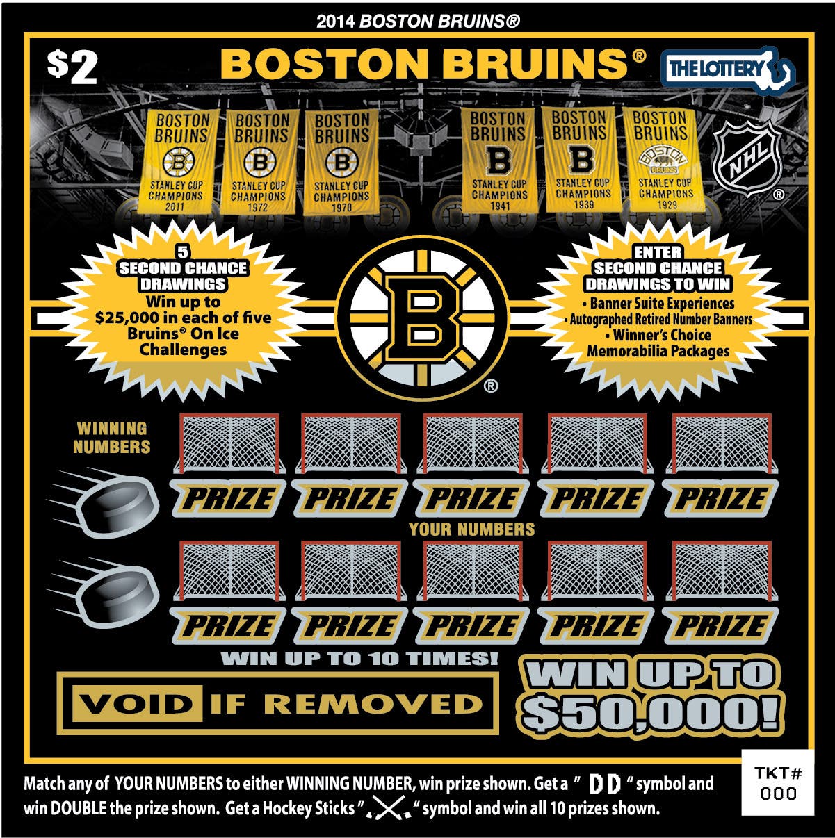 In preparation for the first home game of the upcoming season, the 2014 Boston Bruins Instant Tickets is giving away more than 3 million prizes ranging from $2 to $4,000 and ten 10 prizes of $50,000.