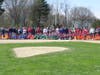 Festivities comprised of mascots, music, speeches and recognition and a ceremonial first pitch thrown out by newly-appointed head of recreation, David Burns.