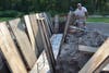"We have to hold off on actual pouring due to safety concerns because of the hurricane," said Lorne Giroux, Facilities Coordinator for Westwood Basketball. "We'll start, come back and put the upper panels on."
