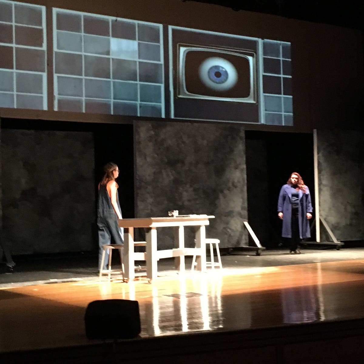 “It is exciting to see my students succeed—to work together and create the show for an audience. The power of hearing them convey a strong point of view about the world and the need for it to be a better place [is] vital. Theatre has always held up a mirror to the world allowing the audience to see who they are. Right now it is imperative that we, as a community treat each other better, care more about one another. The divide in government, the points of views in the news, the horrors we see happening in our communities...all these things point to one thing: we need to be better neighbors, to help one another, and to embrace the idea of community. This play, in looking at a failed system will hopefully remind us of these things,” Howard replies when asked what he is most excited about 1984.