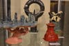 A large portion of the exhibit included works that were created by students as part of an outdoor project at Hale Reservation, where instructors worked with them to use the art of weaving to create something new, using twigs, branches, leaves and yarn and twine.