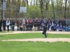The parade began at the and ended at Morrison Park, but it didn’t stop there. All the teams and their families gathered around the field for the after-parade festivities, starting off with a booming heartfelt National Anthem from singer-songwriter Chris Trapper, followed by the first pitch from Coach of the , Matt Gillis, who was also .