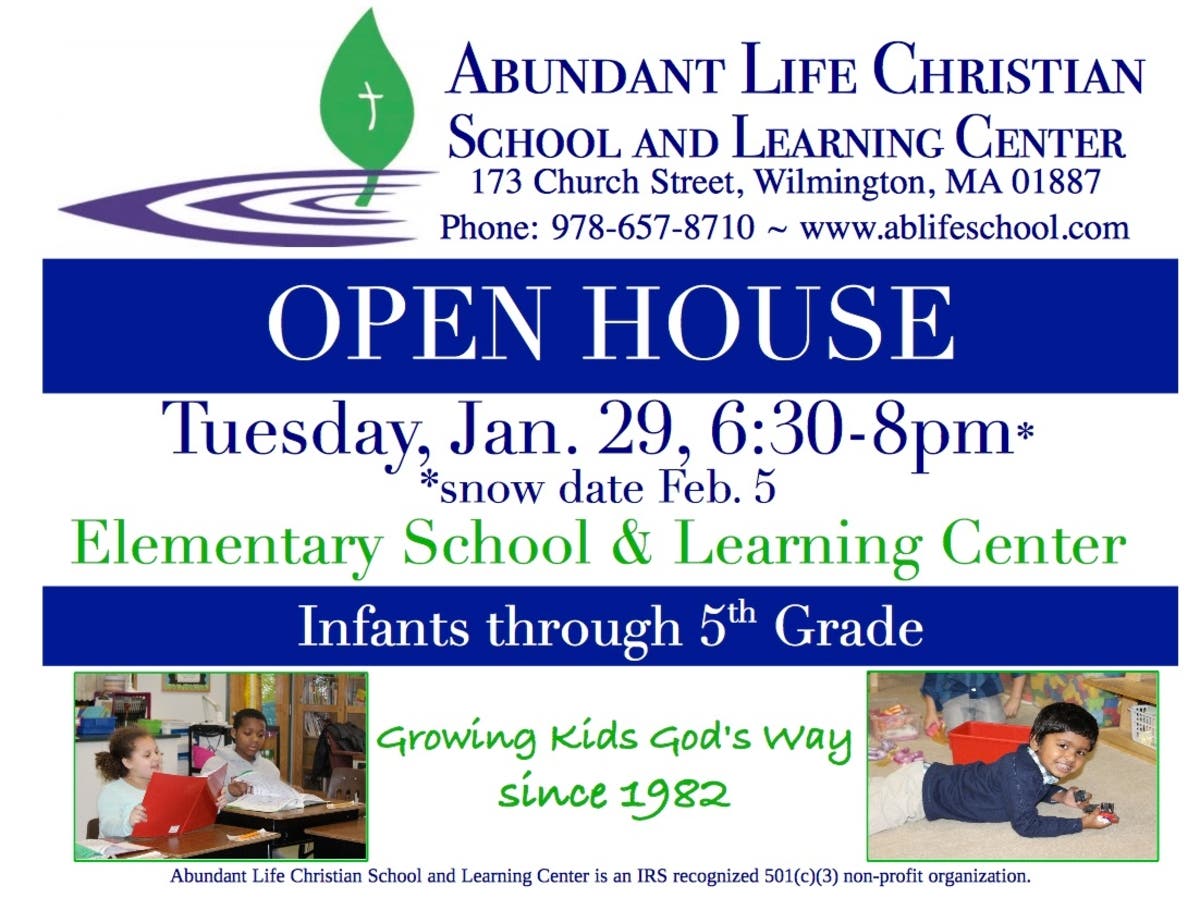 Wilmington – The Abundant Life Christian School and Learning Center will be holding an Open House on Tuesday, January 29, 2019 from 6:30 – 8:00 pm for families of infants through 5th