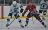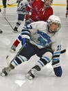 The first of those two goals was an astonishing individual effort. The sophomore skated down the boards where he was met with a check from a Tewksbury player. Owens literally pushed his Redmen foe off of him, skated to the net uncontested and scored.