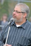 Participants marched from and filed into , where local officials talked about the excitement of baseball season.