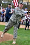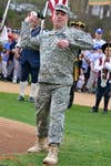 Throwing out the ceremonial first pitches were a pair of United States Army veterans. Bill Savosik, a Vietnam veteran, and Charles Coleman, who recently returned from Afghanistan, each threw first pitches towards Wilmington Little League catchers waiting near home plate.