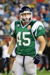 Tight end Brian Hurley suits up for the winning side.
