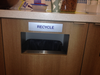 I like the kitchen recycling center in my sister’s office in San Francisco. It’s convenient and tells it like it is. ”Landfill” bin for trash, “Recycle” bin for items that can be recycled, and “Compost” for items that can be composted. Labeling the trash bin “Landfill” gets you thinking about where your trash goes and encouraging composting raises awareness about the importance of composting.
