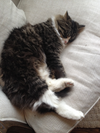 Blueberry went missing on December 10th around Central Street/Rangeley Road/Ravine Road. She is a gray and black striped cat with white chest, white feet and pink nose. Please let us know if you have seen her!