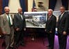 PHOTO: (l to r) Cummings Properties founder Bill Cummings, MBTA Acting General Manager Frank DePaola, Medford Mayor Michael J. McGlynn, and Tufts University President Anthony Monaco at the unveiling of the new building planned for the site of the College Avenue Green Line station.