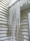 Large icicles can form on roof overhangs, but do not necessarily mean ice damming is occurring. Icicles overhanging doorways and walkways can be dangerous and should be carefully removed.