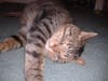 I do have a little bit of a catnip habit. That stuff makes me wild. Give me a nip and dangle some toys and I will be sure to entertain you. Or toss me some paper rolled in a ball. I am sure to chase that (when I am not wrapping with it). I am also a curious guy, so I will be checking out the corners of you house to make sure there is nothing interesting that you may have missed. When not busy exploring or playing, I am pretty laid back and easy going. I even have experience with toddlers. And other creatures. When I was little, my owner had ferrets and I used to wrestle with them. Everything and everyone is my friend. Nothing perturbs me. I am just a big, gentle giant.