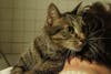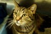 As you can see from my pictures, I am a young, about two years old, very handsome, fit, and trim medium-sized cat. Unlike some felines, I am easy to pick up, very snuggly, and an all-around happy guy. Nothing ruffles me. I am not bothered by new people or places and I am not bothered by other cats or barking dogs. I am what they call laid back and mellow.