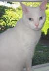 I am an all white cat, which means I am deaf. But you won’t be able to tell that most of the time. I feel the floor vibrations and am very perceptive. If I do need you, I will meow. Because I don’t hear, I make very unique meowing and throaty noises. Or so I am told.