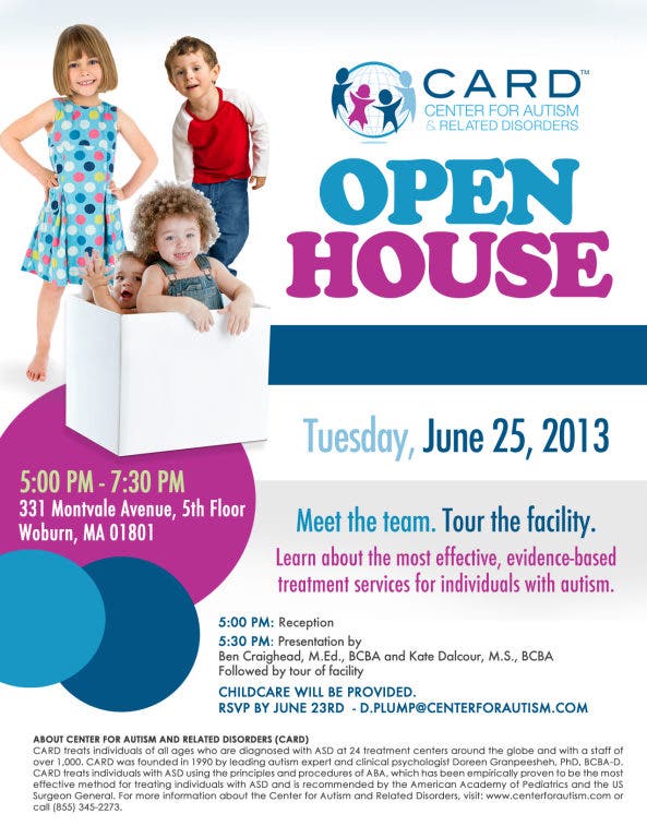 “In spite of this, we were doing ABA therapy with him with local providers, but initially we couldn’t get even half of the 40 hours per week that we knew the research-based, peer-reviewed studies demonstrated would produce the best outcomes for a kid like Torin. At that time, none of the local Massachusetts agencies that we tried worked from a curriculum specific for kids with autism, had an intensive formalized training program for staff, or would help us track his medical treatments for Crohn’s, autism and autoimmune issues and cross-reference the treatments with his progress or setbacks to help us understand what treatments were working. Then, we found CARD. The first weekend we started with CARD, I still remember being completely awed by how unique, caring and all-encompassing their approach was to Torin’s development and our involvement as a family. We had a means to get control of the autism; until that time, the autism was controlling us. I remember that my husband and I held back tears of relief one night because, after just a short time, it was so completely evident that this program, the people, and the training were game changers for our family. CARD gave us hope again.”