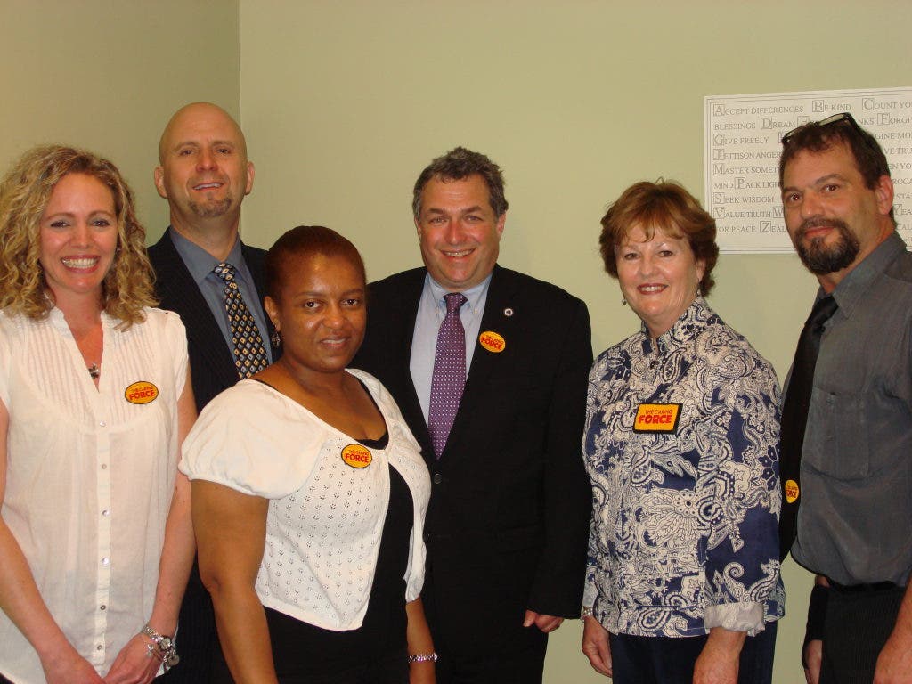 Ms. McCann then began to tell Rep. Gordon about THE CARING FORCE. “There are 185,000 human service workers in the Commonwealth, one in ten people are touched by Human Services, needing it to take care of a child, a parent, people with a disabled child, people who have a child with drug abuse, One in Ten!! If you think about it, Human Service workers pay taxes, we buy food, we buy clothing, we vote, we are active in our community. We are the backbone of this Commonwealth. We need to exert pressure on our legislature to understand what this means and what we contribute. If we went away there’d be a major problem throughout the Commonwealth.”