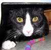 Besides, I like playing with the laser pointer, balls, strings, climbing structures, and anything that moves. I like catching flies, being kissed, lots of petting, and sleeping on the bed with my people, at least part of the night. (The rest of the night, you will find me exploring and keeping your house safe from the after-dark critters.)