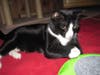 My name is Emiliyo and I am a beautiful black and white tuxedo with amazing golden eyes and the cutest white markings. I feel right at home with my fosters and I will settle in easily at your house when you adopt me (hint, hint), because I am, well, I am an extremely nice and friendly, young cat.