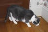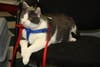 So let’s get to the details. I am very handsome in my grey and white coat. I used to be a bit portly, which was a shame for a young guy like me. After all, I am in the prime of my life at 8 years old. But I have successfully lost the extra weight, and I did not even need Weight Watchers. That is because my foster mom had me running the treadmill.