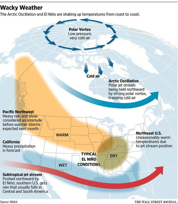 The Wall Street Journal reports on the cause of the unseasonably warm weather.
