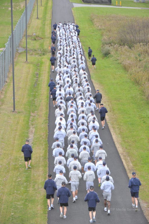 Officer Quigley joined more than 220 members of the 80th Recruit Training Troop at the State Police Academy in New Braintree Monday. The training is 21 weeks long and consists of classroom, situational and physical exercises.