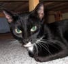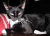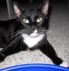 Small, but sassy, that is me, Petite, a gorgeous eight pound tuxedo girl with white socks and a big need of human affection and kisses. I love to play and explore, but will always be happy for a long session of petting first. If you call me, I will come running and then I will roll on my back and play. I am still a kitten, less than a year old, and have my kitten behaviors. But, I can also be very mellow, sitting in the window and watching the world go by or snuggling in bed with you at night. Mellow only goes so far, however. Wait until dinner when I come running at the sound of the can top popping. I have a quiet meow, but I like to use it. If you listen, you will hear me thank you for my meal.