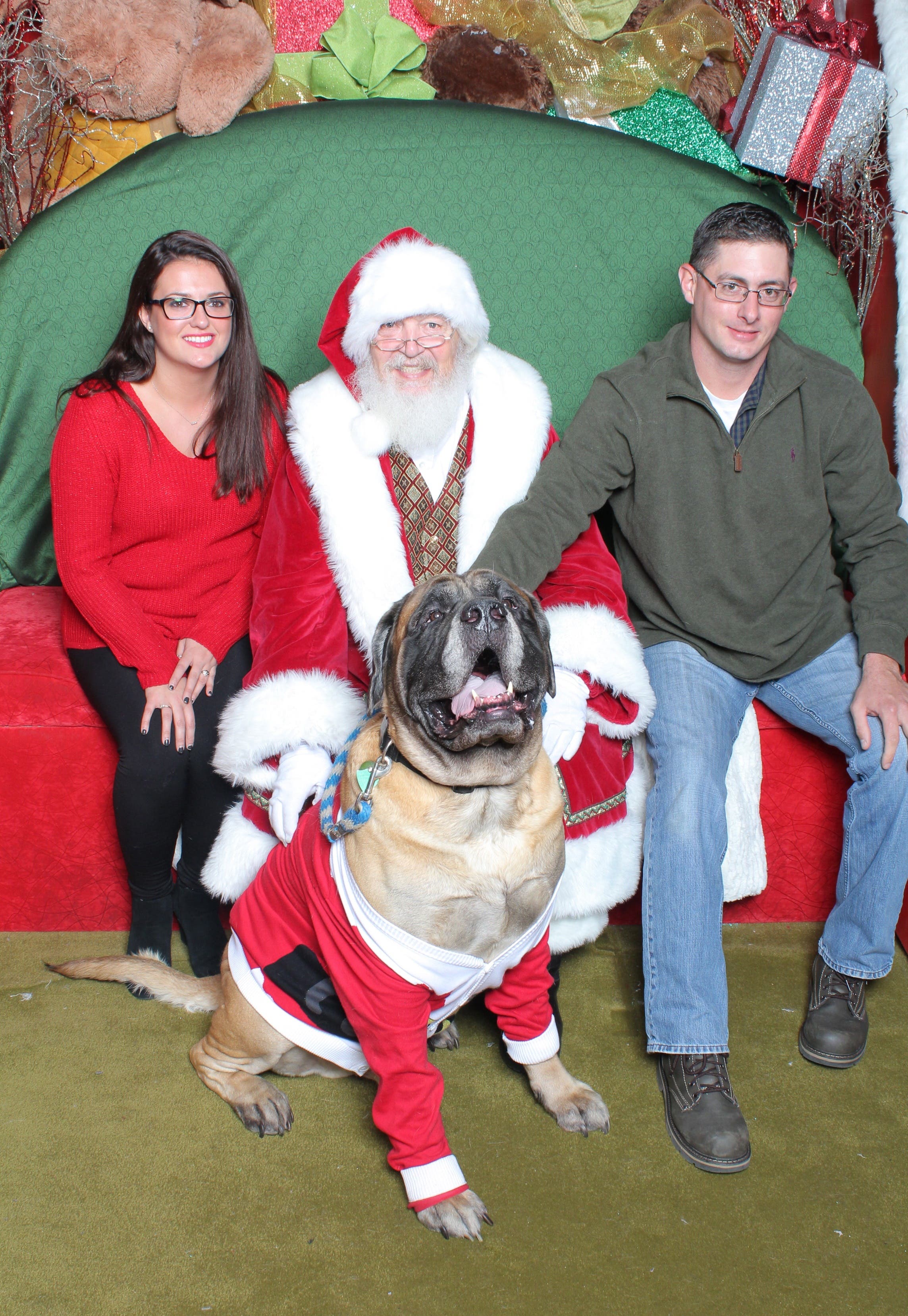 WOBURN, MA — Christmas is here, and that means adorable photos of pets and their owners meeting Santa at local malls. This submission comes to us from the Northshore Mall, where Gus got a chance to meet St. Nick with his owners Jamie Murphy and Mike Lentine of Woburn.