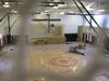 Ear-wise, the music room has a small, separate practice room, both with a row of sound-baffling panels. The cafeteria has the panels, too.
