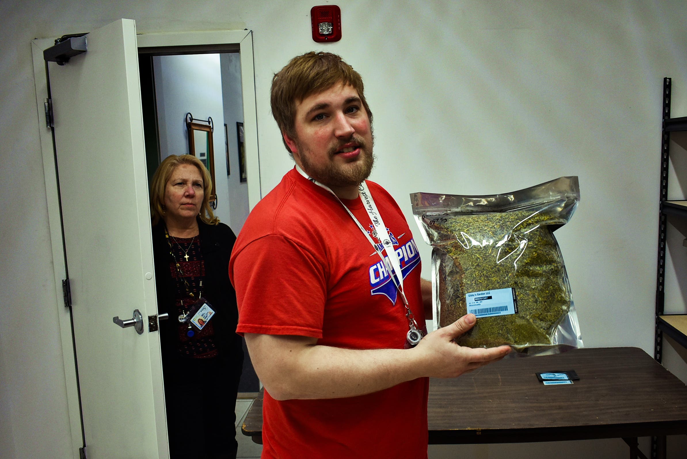 UXBRIDGE, MA — If it wasn't for the crop of marijuana plants growing in the next room, the bright green walls and the slight smell of cannabis in the air, you could mistake it for the family dinner table.