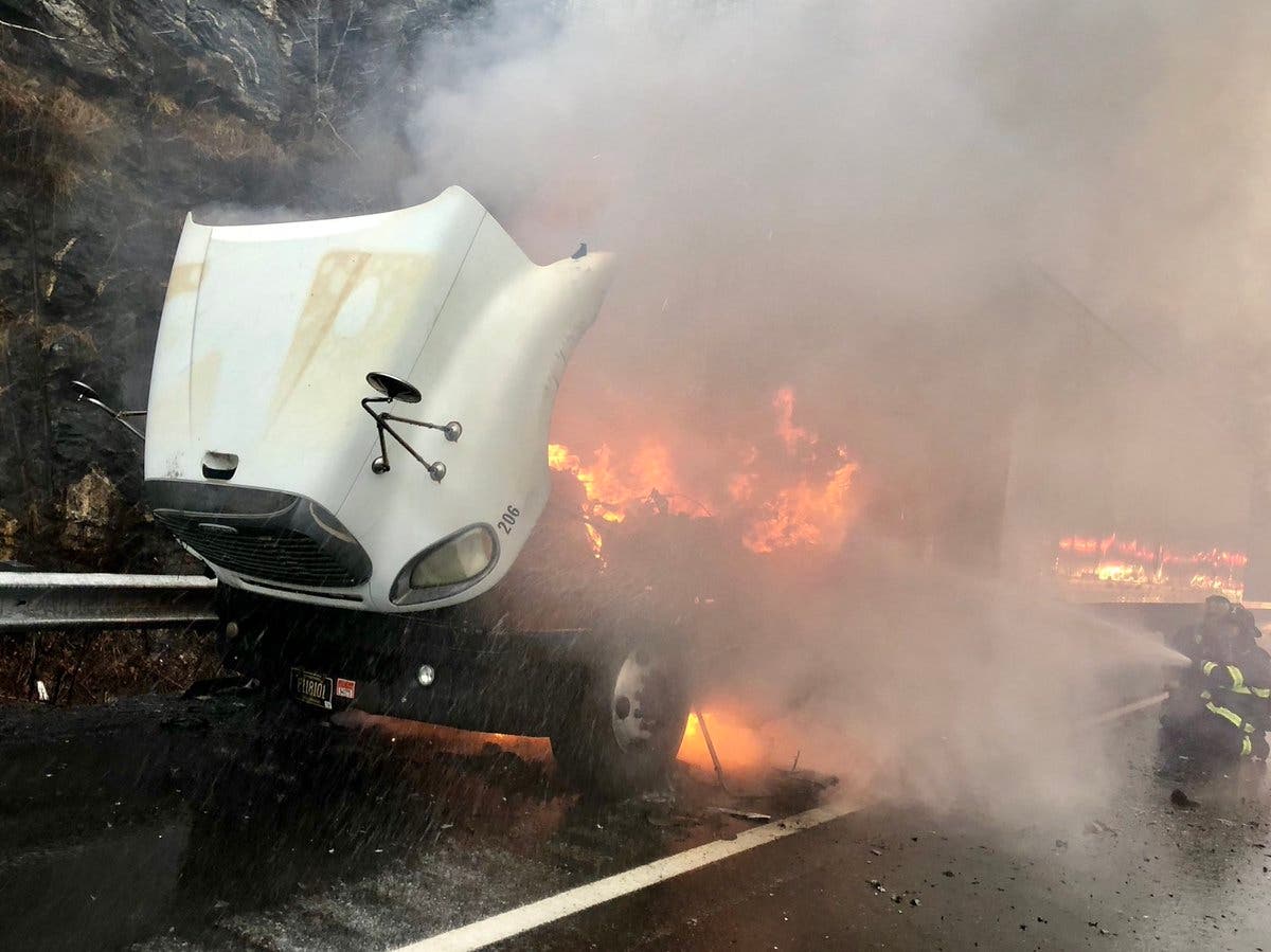 A tractor-trailer caught fire on Massachusetts Turnpike West.