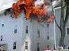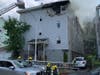 Smoke spewed from the roof as crews worked from ladders in 80 degree heat. Flames could be seen shooting out of the third floor windows. The fire was classified as three-alarms.