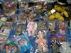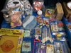 Smurf & Cabbage Patch figurines, 80s Happy Meal Toys, 50s doll & crib, 80s dolls & stuffed animals ie: Michael Jackson in orig box, Laurel & Hardy, 70s Cracker Jack Prizes, unopened 36ct baseball cards: Topps & Donruss, 80s games ie: orig unopened Rubiks Cube in box, depression glass vases & fruit bowls, Avon ornaments & bottles w/orig boxes, 1950s kitchen table & chairs,