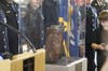 The Epstein family helped bring this memorial to Birmingham through the Port Authority of New York and New Jersey. As it was shown to the public for the first time, at least 200 people gathered around it in the firehouse where the ceremony took place. They took pictures with their phones and carefully examined the small, rusted pieced of history.