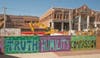 One big development is that artists have started to paint murals on the wooden fences bounding the construction zone. Muralists include Kathy Jamieson from Sundance Shoes and Simona Lucut from Little Avenue Design. Both are shown in the photos above.
