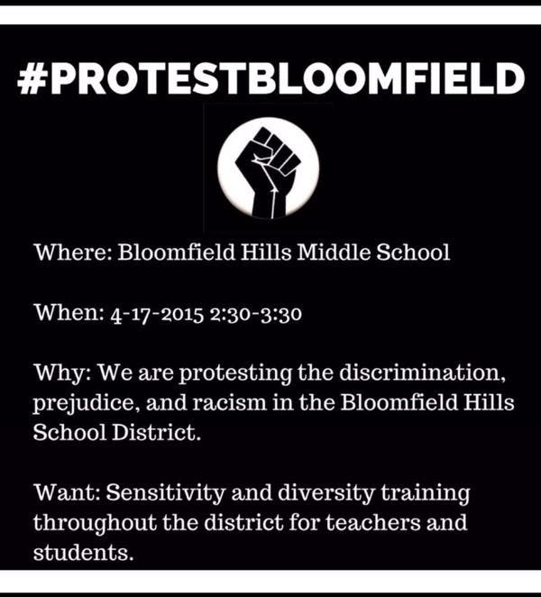 Students, meanwhile, have organized an anti-racism rally from 2:30-3:30 p.m. Friday outside the Bloomfield Hills Middle School, 4200 Quarton Road.
