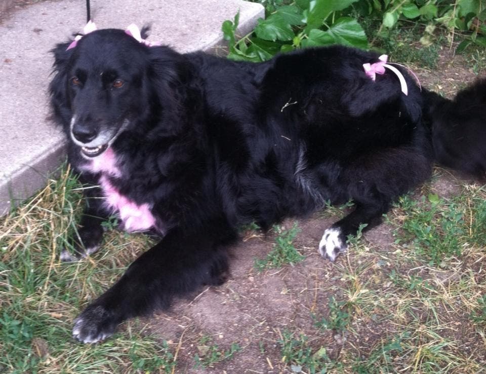 PHOTO: April Millsap’s dog, Penny, led joggers to her body along the Macomb Orchard Trail. The dog’s patches of white hair were colored pink as Armada community members turned out in pink to remember the 14-year-old in the days following her murder. (Photo: Justice for April Facebook page)