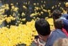 The trumpet sounded, the crowd counted down, and the giant barrels were tipped over. That could only mean that Brighton's Great Duck Race Raffle was underway July 4 at the Mill Pond.