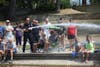 Each rubber duck in the pond had a number on it, corresponding with a ticket sold by the Livingston Sunrise Rotary Club, the organization in charge. The first 55 ducks that made it to the finish line underneath the bridge near Main Street won prizes, including a first place grand prize of a Carribbean cruise.