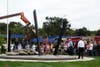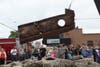 "We didn't expect to do this in front of a crowd," he said, as the crane began putting the piece of steel in place.